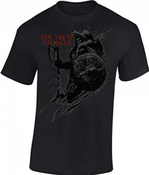 Wikinger T-Shirt Herren | „See You in Valhalla“ | Viking Shirt Männer | Walhalla Spruch Shirt (Schwarz M)