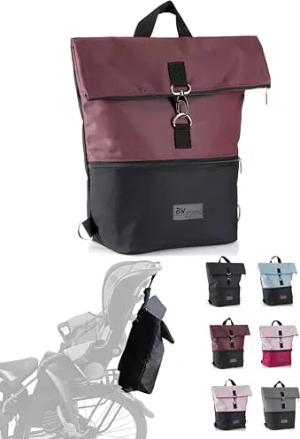 BambiniWelt Fahrradtasche – Rucksack für Kinderfahrradsitz kompatibel mit Römer Jockey, wasserabweisend, mit Klickverschluss & Schultergurt, 20 l Stauraum (schwarz-bordeaux)