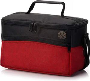 BAMBINIWELT Tasche für Toniebox, Musikbox-Tasche, für Hörwürfel kompatibel mit Toniebox und Tigerbox Touch, verstellbare Innenfächer, Netzfach für Zubehör, Toniebox Tasche (rot meliert)