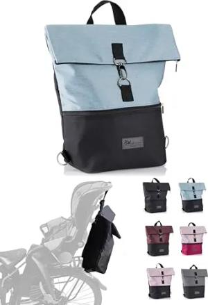 Fahrradtasche [Rucksack für Kinderfahrradsitz] universal kompatibel mit Römer Fahrradsitz Jockey für Radtouren mit Kind Fahrradrucksack Radtasche (schwarz-hellblau)