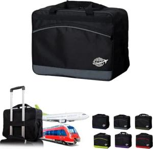 Tasche Handgepäck für Ryanair Wizzair 40x25x20 cm 40x30x20 cm 55x40x20 [Handgepäcktasche] Flugzeug faltbare Reisetasche Weekender Handgepäck-Koffer (schwarz-schwarz, XXL (55x40x20))
