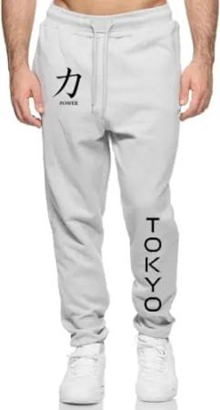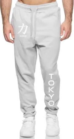 Jogger Jogginghose Trainingshose Tokyo Sporthose Sport mit elastischem Bund H.60000_Tokyo (H.60000_Tokyo, GrauWeiß, Gr. XL)