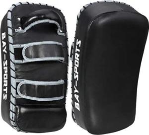 BAY Sports Leder Thai TECH 2020 Arm-Pratzen, Handpratzen, Armschlagpolster, vorgekrümmt, schwarz, Pratzen, krumm, Kickboxen, Muay Thai, Thaiboxen, MMA, K1, K-1, Handschlagpolster