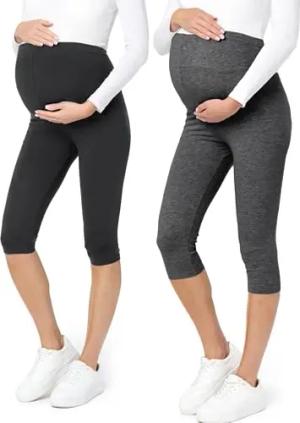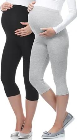 3/4 Umstandsleggings Kurz aus Baumwolle Bequeme und blickdichte Schwangerschaftsleggings 2Pack Umstandsmode BE20-229 (2Pack Schwarz/Dunkelmelange, XL)