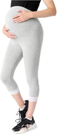 Damen Kurze Umstandsleggings Bequeme und Schwangerschaftsleggings aus Baumwolle Umstandshose Umstandsmode für Sommer BE20-228 (Mittel Melange, 3XL)