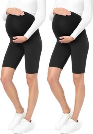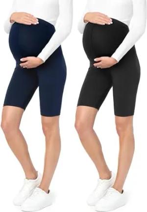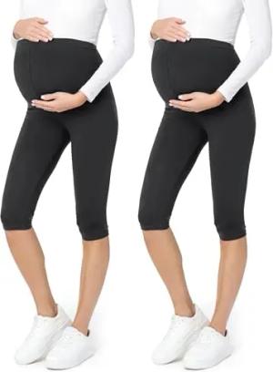 Damen Kurze Umstandsleggings 2er Pack Bequeme und Schwangerschaftsleggings aus Baumwolle Umstandshose Umstandsmode für Sommer BE20-228 (2Pack Schwarz/Schwarz, M)