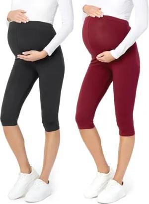 3/4 Umstandsleggings Kurz aus Baumwolle Bequeme und blickdichte Schwangerschaftsleggings 2Pack Umstandsmode BE20-229 (2Pack Schwarz/Weinrot, XL)