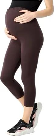 Damen Kurze Umstandsleggings Bequeme und Schwangerschaftsleggings aus Baumwolle Umstandshose Umstandsmode für Sommer BE20-228 (Braun, XL)