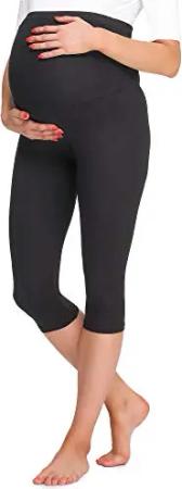 Damen Kurze Umstandsleggings Bequeme und Schwangerschaftsleggings aus Baumwolle Umstandshose Umstandsmode für Sommer BE20-228 (Dunkel Melange, M)