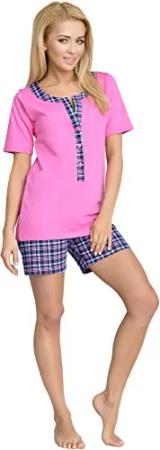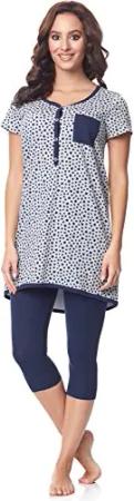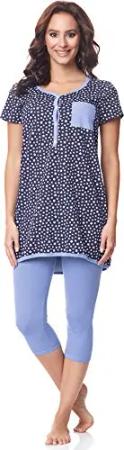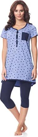 Damen Kurzarm Pyjama mit Stillfunktion BE20-177, Blau-Punkten-Marine, S(Blau-Punkten-Marine, S)
