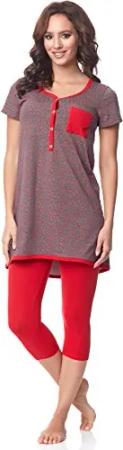 Damen Kurzarm Pyjama mit Stillfunktion BE20-177, Grau-Sterne-Rot, S(Grau-Sterne-Rot, S)