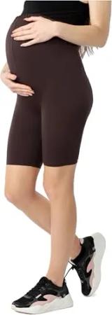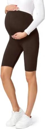 Kurze Umstandsleggings aus Viskose Bequeme und blickdichte Schwangerschaftsleggings Umstandsshorts Umstandsmode Sommer BE-04 (Braun, XS)