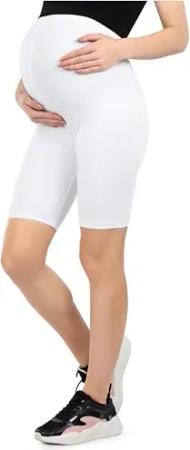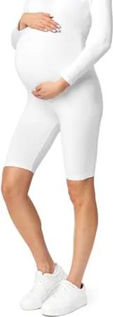 Kurze Umstandsleggings aus Viskose Bequeme und blickdichte Schwangerschaftsleggings Umstandsshorts Umstandsmode Sommer BE-04 (Weiß, XL)
