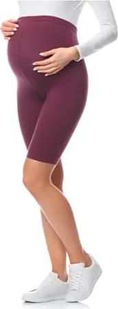 Kurze Umstandsleggings aus Viskose Bequeme und blickdichte Schwangerschaftsleggings Umstandsshorts Umstandsmode Sommer BE-04 (Pflaume, S)