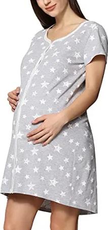 Damen Umstands Nachthemd Kurz Arm mit Stillfunktion BE20-275 (Melange Sterne Creme, XXL)