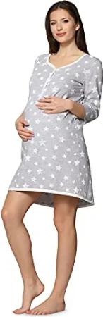 Damen Umstands Nachthemd mit Stillfunktion BE20-176 (MelangeSterneCreme, S)