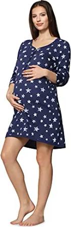 Damen Umstands Nachthemd mit Stillfunktion BE20-176 (NavySterneBlau, XL)