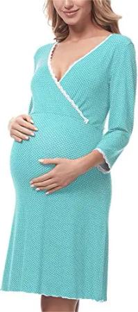 Damen Umstands Nachthemd mit Stillfunktion BE20-196 (Türkis, S)
