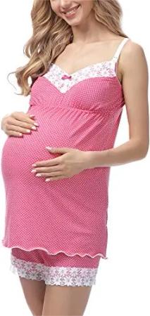 Damen Umstands Pyjama mit Stillfunktion BE20-143 (Rosa, S)