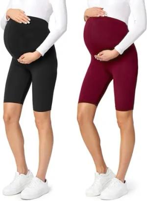 Kurze Umstandsleggings aus Viskose Bequeme und blickdichte Schwangerschaftsleggings Umstandsshorts Umstandsmode Sommer BE-04 (Schwarz/Dunkelrot(2Pack), L)