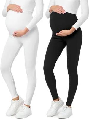 Lange Umstandsleggings 2er Pack aus Baumwolle Leggings für Schwangere Umstands Leggings Schwangerschafts Unterhosen mit Hoher Bund BE20-230 (Schwarz/Weiß, S)