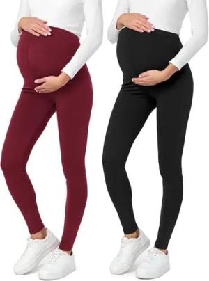 Lange Umstandsleggings 2er Pack aus Baumwolle Leggings für Schwangere Umstands Leggings Schwangerschafts Unterhosen mit Hoher Bund BE20-230 (Schwarz/Weinrot, 3XL)