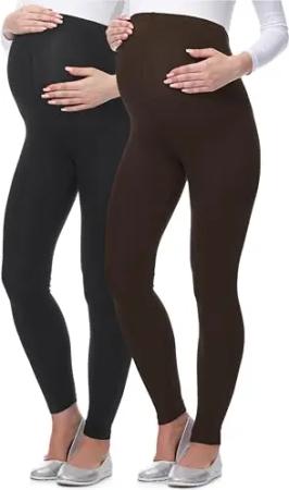 Lange Umstandsleggings aus Viskose Leggings Blickdicht Damen, Maternity Clothing, Ideal für die Schwangerschaft BE-02 2er Pack (Schwarz/Braun, XL)