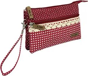 Damen Patchwork Karo Handgelenk-Täschchen, Berry