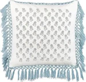 Dekokissen mit Füllung Muster Fransen Baumwolle weiß/blau 45 x 45 cm Pallida