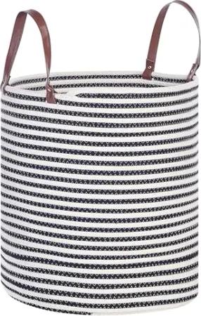 Korb Baumwolle weiß/schwarz handgemacht rund mit Griffen Aufbewahrung Ichka