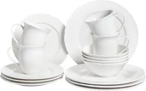 Set aus 16 Teilen Porzellangeschirr Kaolin Handgemacht Glänzend Weiß Elderberry