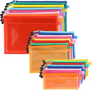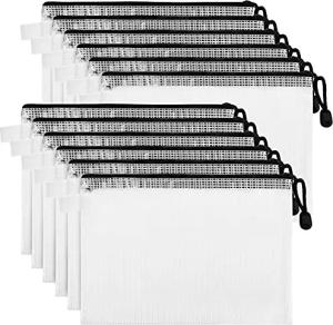 12er Pack Klare Mesh Wasserdichte Tasche mit Reißverschluss Zipper Beutel - Dokumententasche A4 Zip Beutel - Plastikbeutel Verschließbar für Reisen, Organisation von Kosmetika, Schule