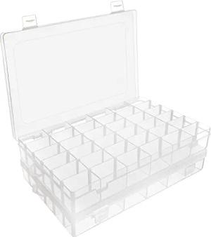 2 Stk Sortierboxen für Kleinteile aus Durchsichtigem Kunststoff – 27,3 x 17,6 x 4,3 cm – 36 Herausnehmbare/Verstellbare Fächer – Für Kleinteile, Schrauben, Nähzubehör & Bügelperlen