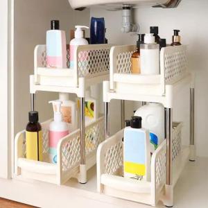 (2er Pack) 2-Stöckige Spülschrank Organizer - Ausziehbare Unterschrank Organizer für Küchenschränke, Badezimmer & Mehr - Mehrzweck Unter Waschbecken Regal/Schubladen