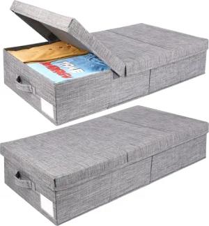 (2er Pack Faltbare Unterbett Aufbewahrungsbox mit Griffen - Bettkasten Aufbewahrung, Schrank oder Kleiderschrank - Aufbewahrung Kleidung, Schuhe, Bettdecken, Decken und Bettwäsche