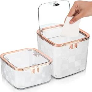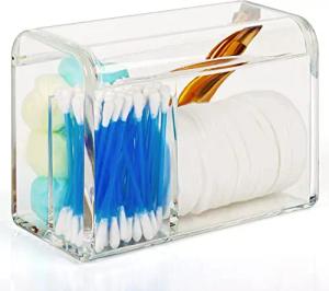 3 Fächern Badezimmer Organizer mit Deckel - Durchsichtiger Acryl Schminktisch Organizer - Spenderbehälter für Kosmetika, Make-up, Wattestäbchen, Wattebällchen und Wattepads Aufbewahrung
