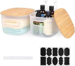 2x Aufbewahrungsbox mit Bambus Deckel - Kunststoff Aufbewahrungsboxen mit Label und Stift - Aufbewahrungsbox Set für Küche Badezimmer Wohnzimmer - Boxen zur Aufbewahrung