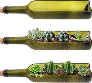 3er Pack Glas Weinflasche Sukkulente Blumenkasten Vintage Blumentopf - L32 x B7,1 cm Ovaler Ausschnitt - Vintage Deko Für Pflanzen, Blumen, Kakteen, Bambus, Garten, Terrarium & DIY-Deko