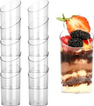 50 Stk Mini Plastik Dessertbecher - L5 x H8,2 cm - 70 ml - Durchsichtiger Runder Mehrweg Plastikbecher für Dessert- Servier- & Dessertgläser Plastik für Kostproben, Vorspeisen & Dessert