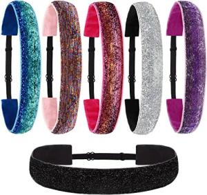 6 Stück Elastische Glitzer Haarbänder Damen - Rutschfestes Haar Band für Mädchen und Frauen - Blau, Silber, Regenbogen, Rosa, Lila und Schwarz - Bewegung, Gymnastik und Sport Stirnband