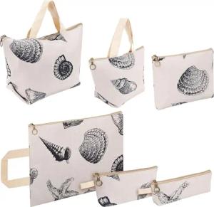 (6er Pack) Bedruckte Baumwoll-Beutel mit Reißverschluss - Mehrzweck-Kosmetiktasche Klein Organizer Tasche für Kosmetik, Make-up, Schreibwaren, Toilettenartikel & Mehr