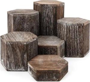 6er Pack Brauner Sechseck Dekosäule Holz Podest Holz Displays - Vintage Deko Holzklotz für Regale & Arbeitsplatten - Sockel für Skulpturen, Schmuck, Figuren, Cupcakes & Desserts