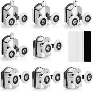8er Pack Duschkabinen Ersatzteile Schiebetür Komplettset - Zinklegierung Laufrollen Schiebetür mit D23 mm - Zwillings-Schiebetür Beschlag für Glasduschtür - Befestigungen & Reinigungsrakel
