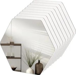 9er Pack Sechseckiges Spiegel Klein Set - 20,5 x 18 cm - Wanddeko für Wohnzimmer, Schlafzimmer & Flur - Ideale Dekorative Glas-Spiegel zum Kleben für DIY-Kunst-/Bastelprojekte