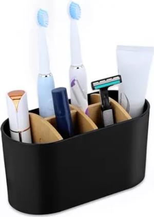 Badezimmer Zahnputzbecher Bambus - Zahnbürstenhalter und Zahnpastahalter - Familienzahnbürstenbecher - Mit 6 Fächern - Badezimmer Organizer - Bad Organizer - Zahnbecher