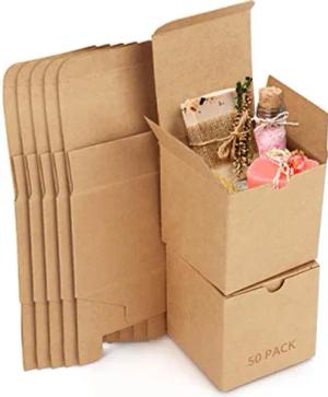 Geschenkbox aus Kraftpapier, Braun, 50 Stück – Karton mit 7,5 x 7,5 x 7,5 cm – Geschenkbox aus Karton, einfache Montage, für Partys, Geburtstage, Hochzeiten, Taufen, Veranstaltungen