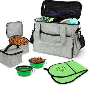 Hunde-Tragetasche - Faltbarer Hundenapf - Tragetasche Hund mit Mehreren Taschen - Mit Futterbehälter - Hundetasche für Hundezubehör - Hunde Rucksack - Hunde Reisetasche