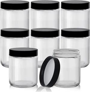 Klare Runde Vorratsgläser mit Deckel aus Plastik Schwarz (8er Pack) - 240ml Luftdichtes Glas Aufbewahrung Set Schraubglas mit Deckel für Küche & Lebensmittel, Kaffee & Gewürz Aufbewahrung