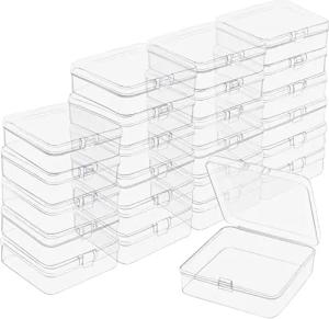 Kleine Aufbewahrungsboxen aus Klarem Kunststoff mit Klappdeckel (24 Stk) 7,2 x 6,3 x 1,7 cm - Mini Aufbewahrungsbox für Pillen, Perlen, Schmuck, Bastelartikel & Kleinteile Aufbewahrungsbox