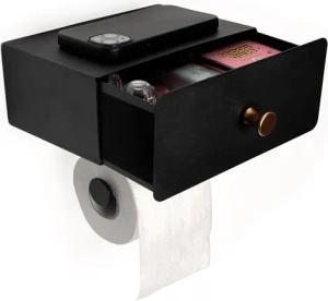 Klopapierhalter ohne Bohren - Toilettenpapierhalter ohne Bohren - Mit Schublade für Bad-Accessoires - Toilettenpapierhalter schwarz - Llopapierhalter schwarz